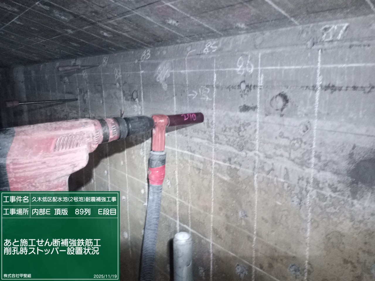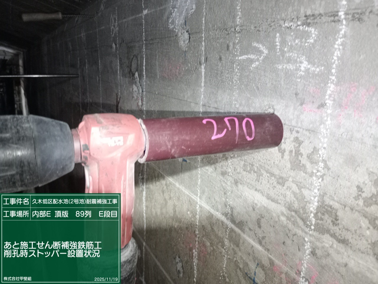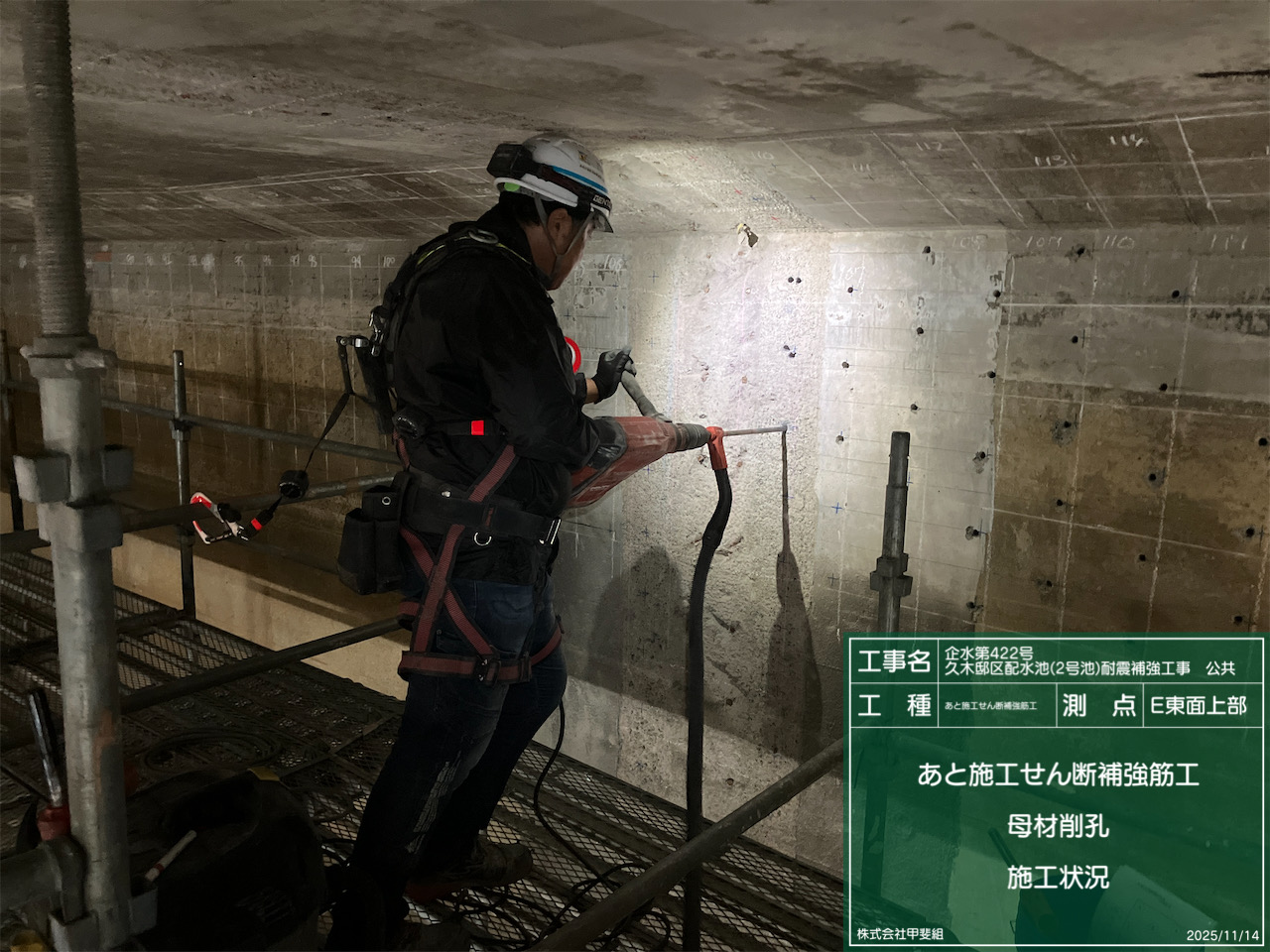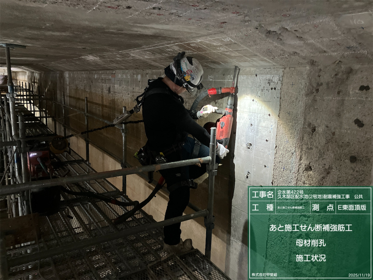 12月に入り、削孔した4000箇所の鉄筋定着工(せん断補強鉄筋挿入)を行う予定です。